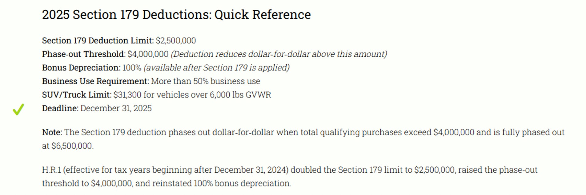 - Maximize Deductions: Write off up to $2,500,000 in qualifying purchases this year.